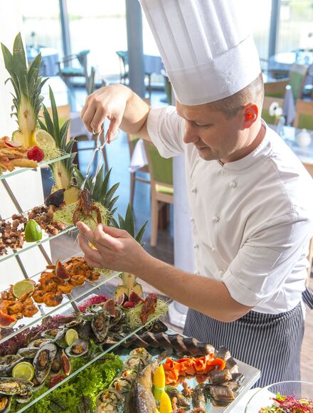 Wenn Sie planen, eine Feier oder ein besonderes Ereignis zu organisieren, sind unsere Köche offen für Ihre Vorschläge. Unter den Sonderangeboten haben wir mehrere Menüvorschläge vorbereitet, die den Umständen entsprechend ausgewählt wurden und verschiedene Vorlieben berücksichtigen. Wir bieten auch ein individuelles Menü an, das nach Absprache mit unserem Küchenchef zusammengestellt wird.